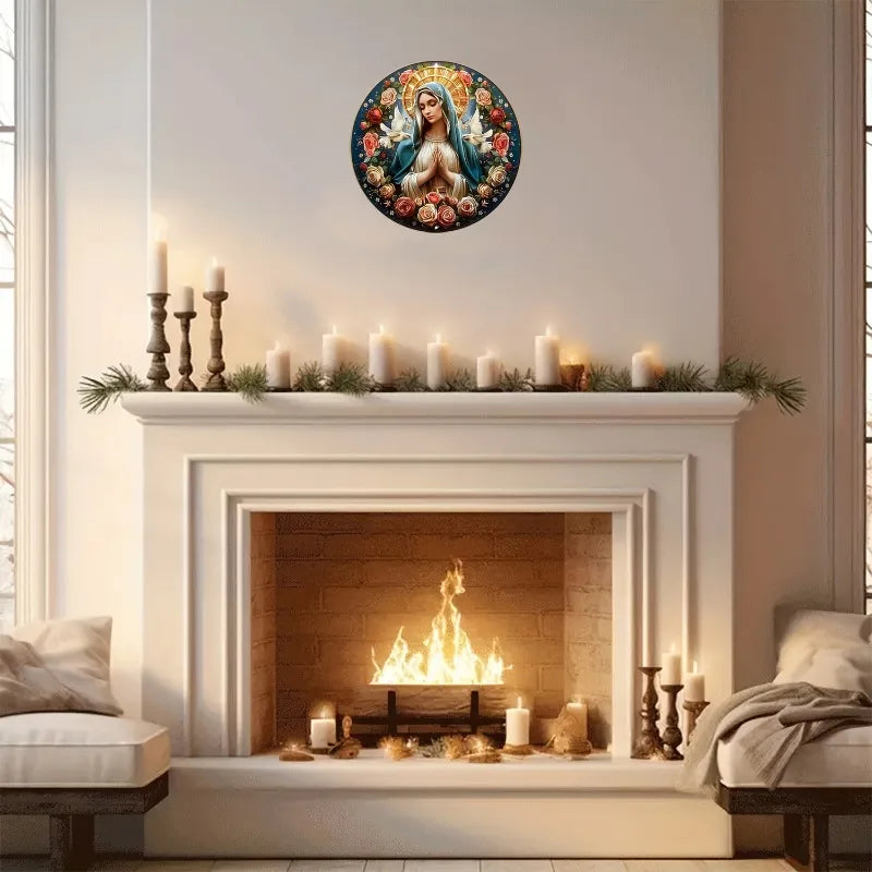 Placa de Alumínio Virgem Maria com Guirlanda Floral